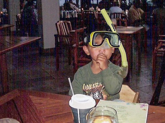 While in Hawaii, Lukas wore his snorkel gear to dinner more than he did in the water.