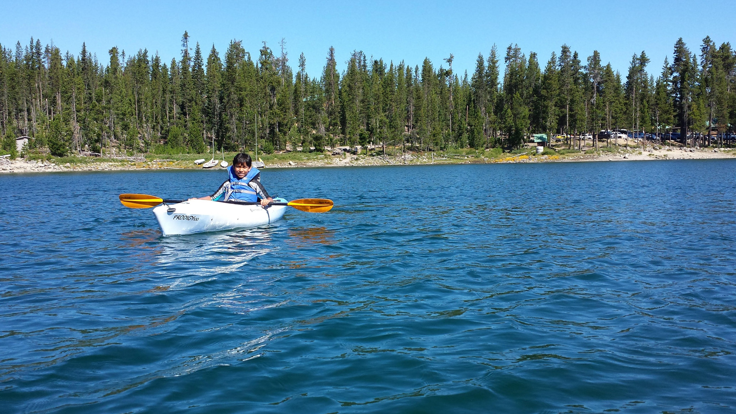 Lukas spent time canoeing outside Bend, Oregon while visiting his Oregon family.